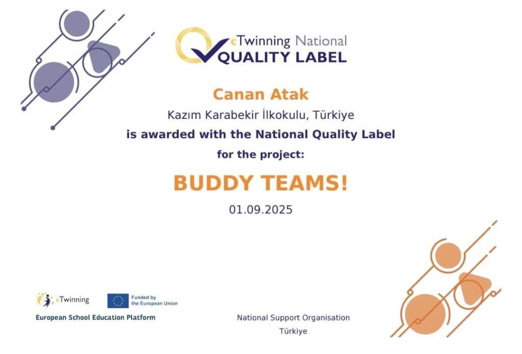 The Magical World of Insects adlı eTwinning Projesi ile Melek ÖZTÜRK öğretmenimiz ve BUDDY TEAMS adlı eTwinning Projesi ile Canan ATAK öğretmenimiz Ulusal kalite Etiketi ile ödüllendilirildi. Okulumuz adına öğretmenlerimizi ve öğrencilerimizi tebrik eder, başarılarının devamını dileriz.